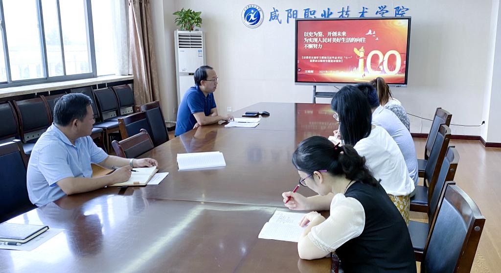 7月26日,咸阳职院纪委党支部举行学习贯彻“七一”重要讲话精神宣讲报告会,纪委党支部书记王晓辉以《以史为鉴、开创未来,为实现人民对美好生活的向往不懈努力》为题作专题宣讲报告,全体党员参加。