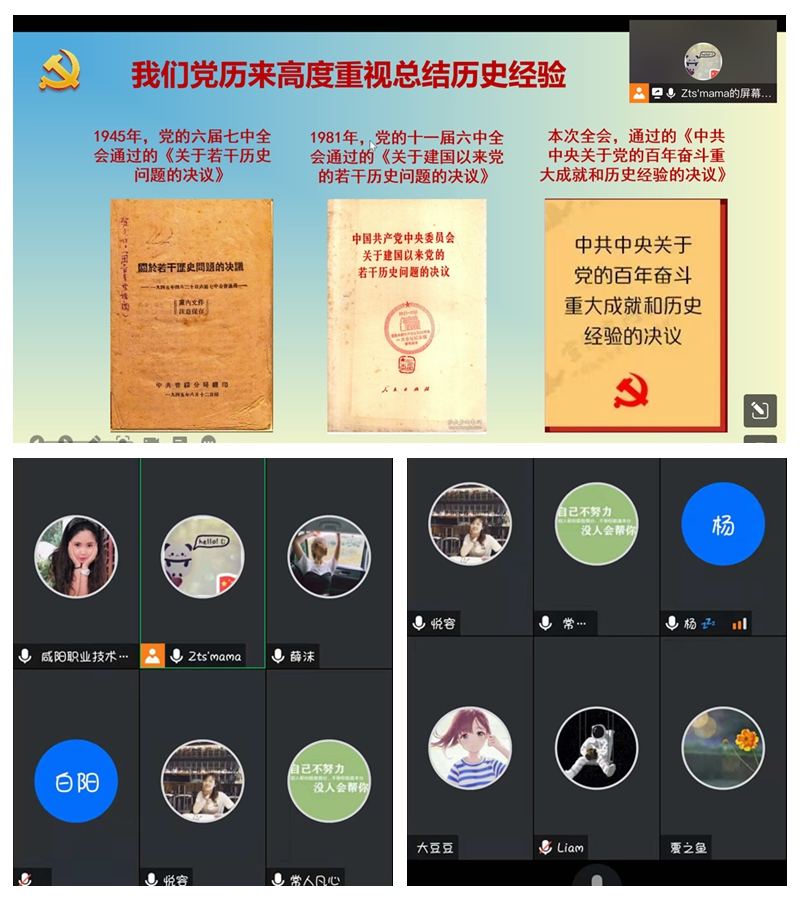 12月24日上午,学院党的十九届六中全会精神宣讲团成员、马克思主义学院副院长蔺建英作党的十九届六中全会专题讲座,纪委、宣传统战部全体教职工通过线上会议的形式聆听了报告。