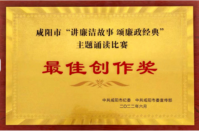 6月30日,咸阳市“讲廉洁故事颂廉政经典”主题诵读比赛决赛在咸阳市大秦剧院进行,咸阳职院荣获最佳创作奖。