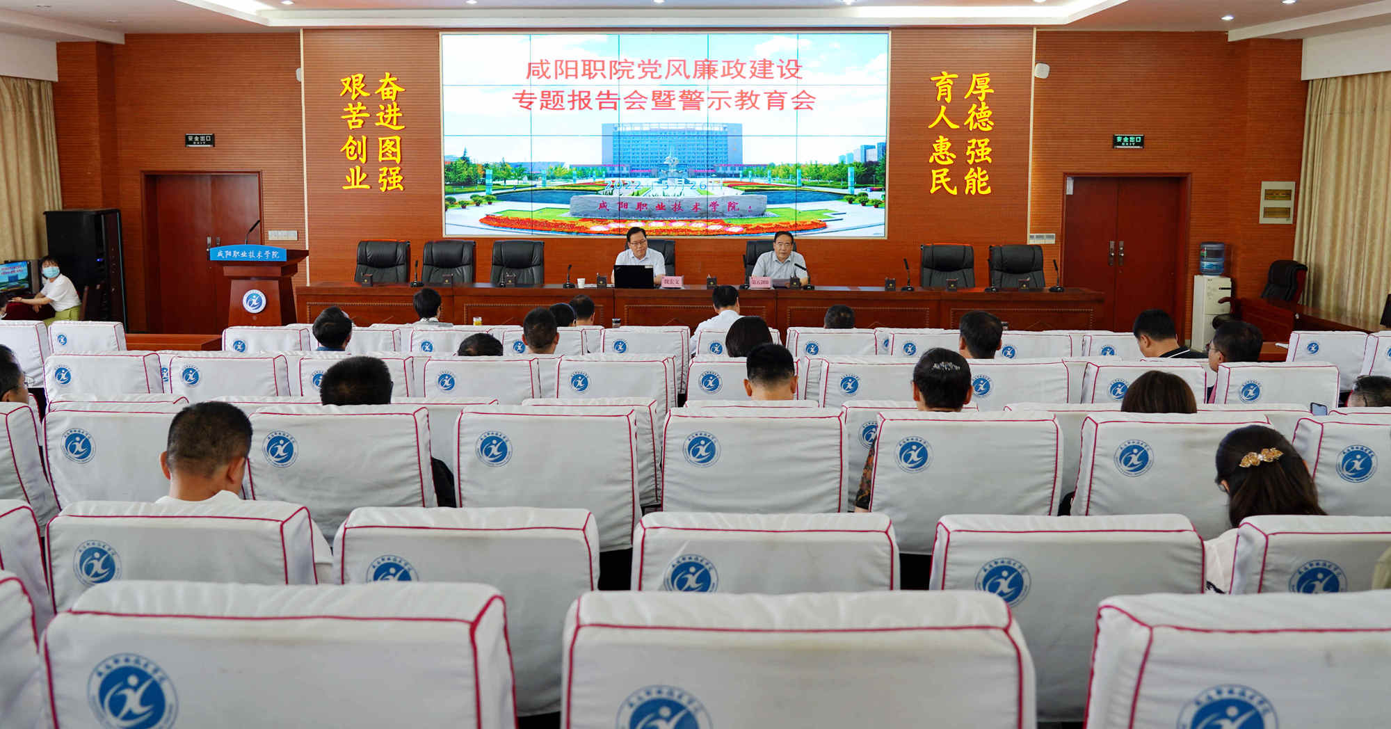 5月26日,学院召开党风廉政教育专题报告会暨警示教育会,特邀咸阳市纪委委员、市纪委监委办公室主任魏宏文同志作题为“激浊扬清,大道之行——全面从严治党成效、形势和路径”的廉政教育专题报告,学院领导各二级学院、处、室党政主要负责人参加。魏宏文从我国全面从严治党的成效、形势、路径三个方面展开,结合各领域的违法违纪典型案例,对广大党员领导干部如何挺纪在前,坚守底线,各级党组织及相关职能部门如何深化运用“四种形态”,更好开展监督等内容进行了细致的解读。与会党员领导干部纷纷表示,报告内容翔实、深入浅出,既全面系统、又直观深刻,既有理论深度、又有警示教育意义,对于党员干部更好地推进全面从严治党,做好学院党风廉政建设和反腐败工作具有重要的启发和指导作用。