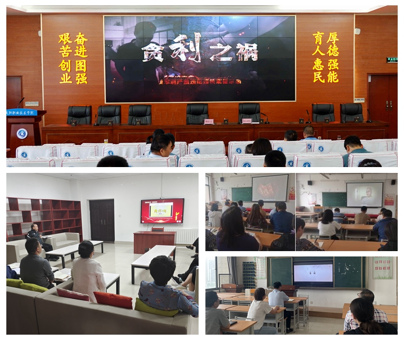 为充分发挥警示教育在反腐倡廉建设中的治本作用,纪委5月26日组织学院副县级及以上领导干部观看警示教育片《贪利之祸》。二级学院党总支、处室党支部组织党员干部认真观看学习了《帐总是要算的》《远离家庭腐败》《背离初心的国企蛀虫》《党史中的清廉故事》《守望家风》《蜕变的人生》《廉政文化与人生格调》《八小时之外》等警示教育片,一个个典型案例,教育党员干部知敬畏、明底线、受警醒,拉起拒腐防变的思想警戒线。