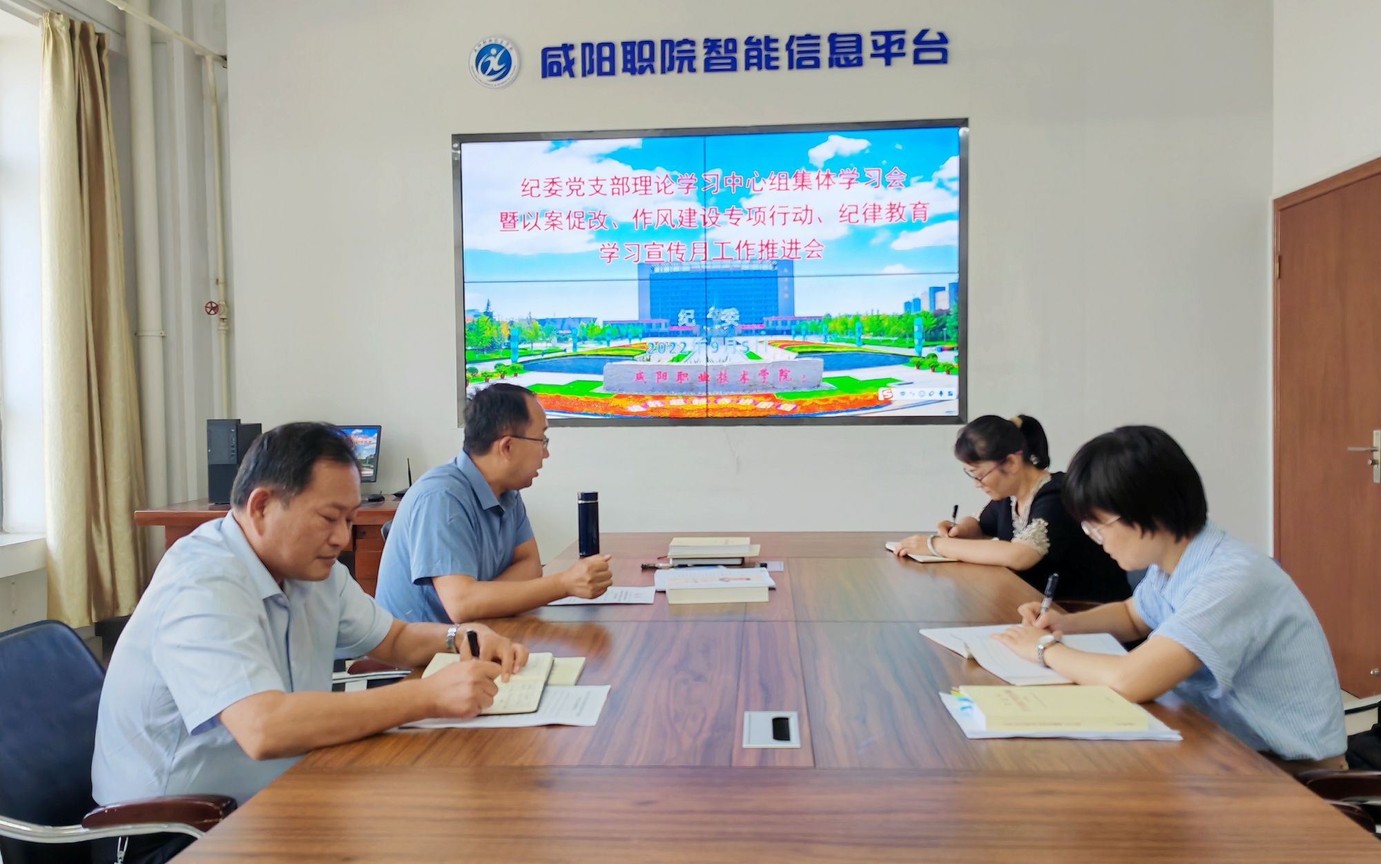 会议学习了《习近平谈治国理政》第四卷节选篇目;习近平总书记在省部级主要领导干部“学习习近平总书记重要讲话精神,迎接党的二十大”专题研讨班上的重要讲话;《习近平关于严明党的纪律和规矩论述摘编》部分内容;《习近平关于全面从严治党重要论述摘编》部分内容;《关于开展李安琪等五名干部职工案以案促改工作实施方案》《关于开展作风建设专项行动的实施方案》《中共咸阳职业技术学院委员会办公室关于在全院开展纪律教育学习宣传月活动的通知》等,并传达了学院作风建设专项行动暨纪律教育学习宣传月动员会会议精神。